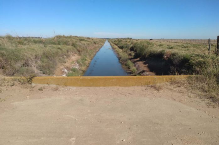 Tiene un canal de desagüe que cruza todo el campo y elimina los excesos de agua en el canal Mercante.